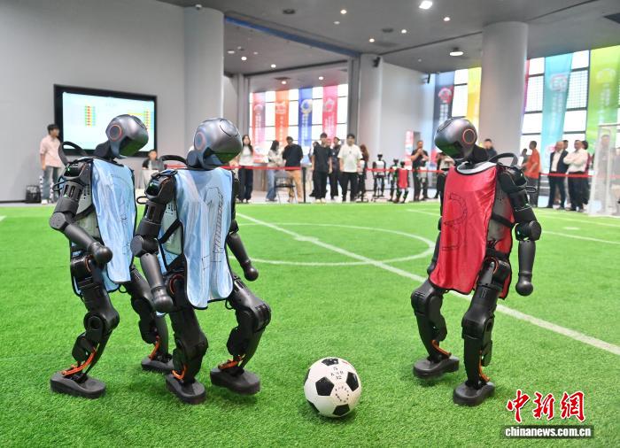 图为呆板人停止脚球角逐。中新社记者 弛瑶 摄