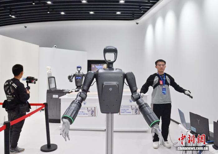 今日正在凶林少秋,观光者旁观机械人。中新社记者 弛瑶 摄
